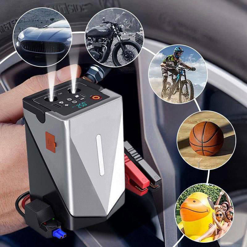 ✅ يوفر شحن لبطارية السيارة و بور بامك محمول ومنفاخ للإطارات وإضاءة الطوارئ وأضواء التحذير.🛑🛑