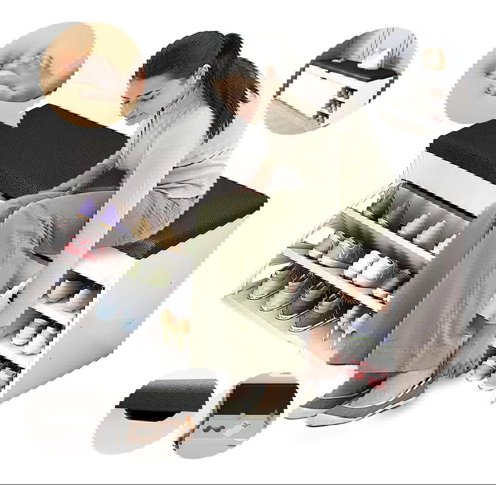 ✨ تصميم ذكي 2 في 1: خزانة لتخزين الأحذية ومقعد جلوس مريح في قطعة أثاث واحدة.