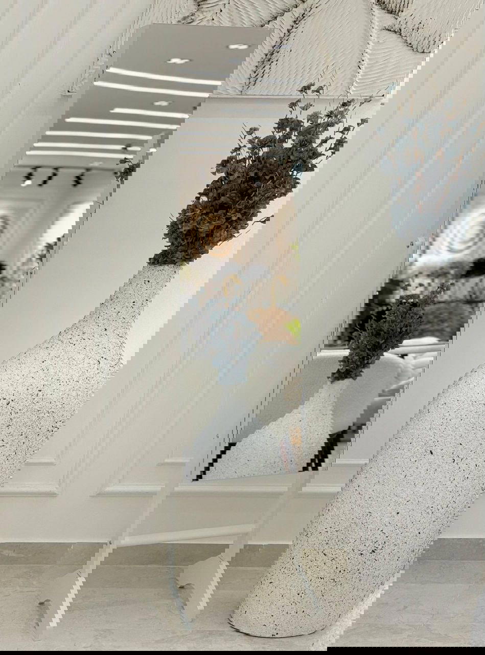 مرآة طويلة تعليق على حيط+معها علاقة للأرض توقيف بلون الأسود والذهبي تصميم راقي وجودة عالية.قياس 130*34  Preview Image