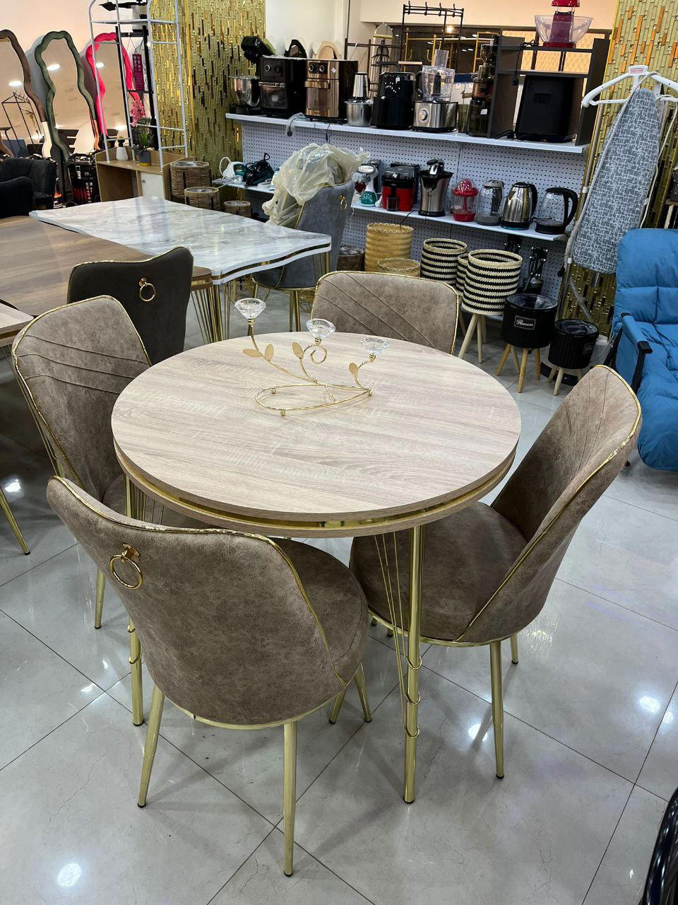 طاولات سفرة جرانيت مميزة جدا مع اربع كراسي حديد مع جلد وتنجيد مربع و دائري قطر 80 و ارتفاع 75