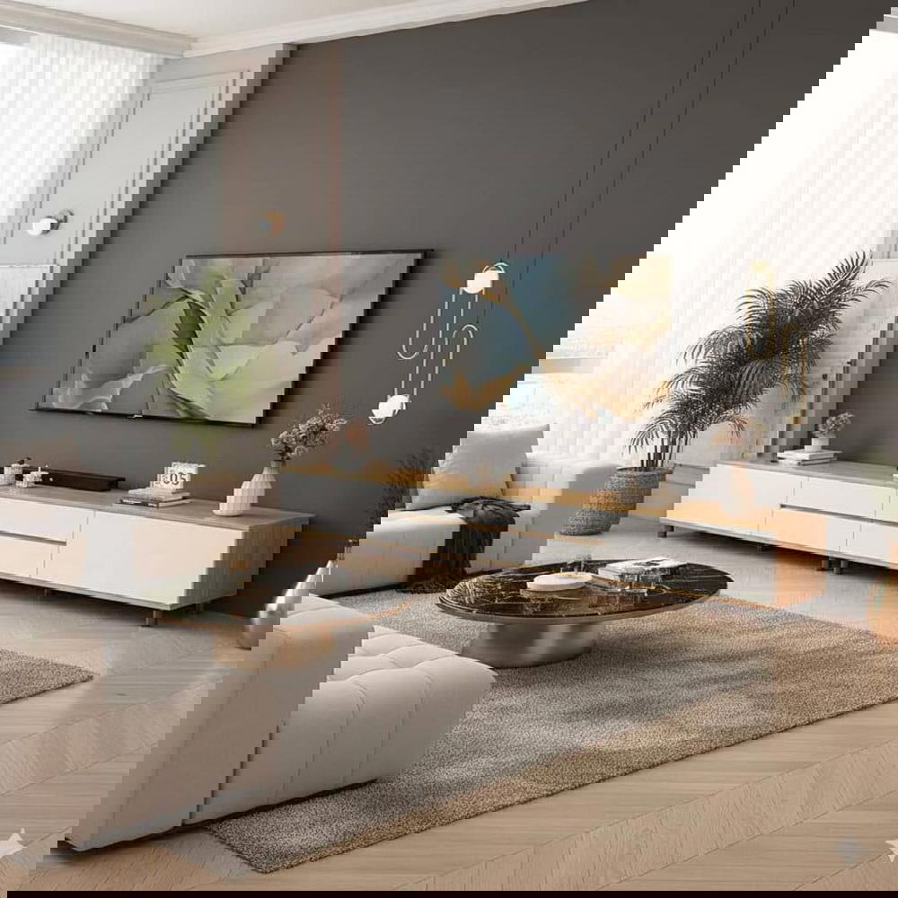 لمنزل عصري ومميز نقدم لكم طاولة وسط مع مزنون تلفزون باحدث التصميمات باللون الخشبي